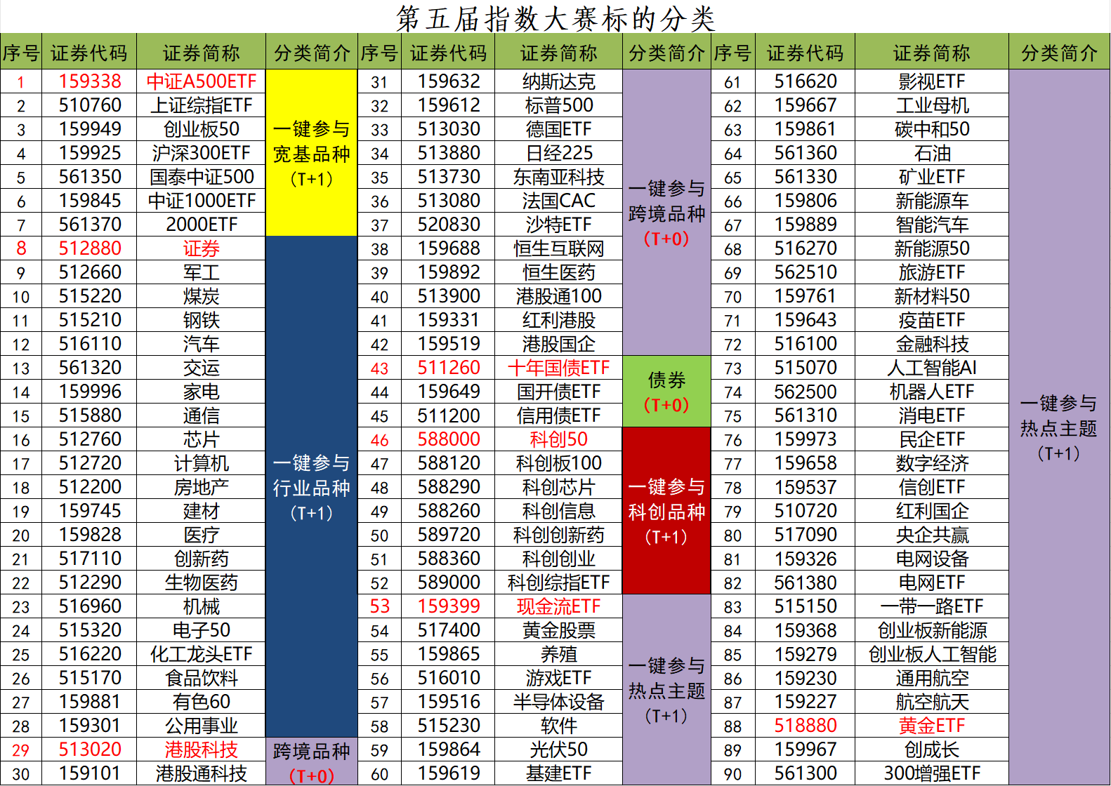 回顾过去二十余年,ETF凭借“化繁为简”的独特优势实现了跨越式发展。以股票型ETF为例,它将市场上五千余只个股凝练为三四十个行业主题、十余个核心宽基,极大降低了投资者的决策成本。本次大赛精选的90只标的,除全面覆盖上述品种外,还进一步纳入了smart beta、商品、债券、跨境等多元资产,力求满足不同类型投资者的配置需求。